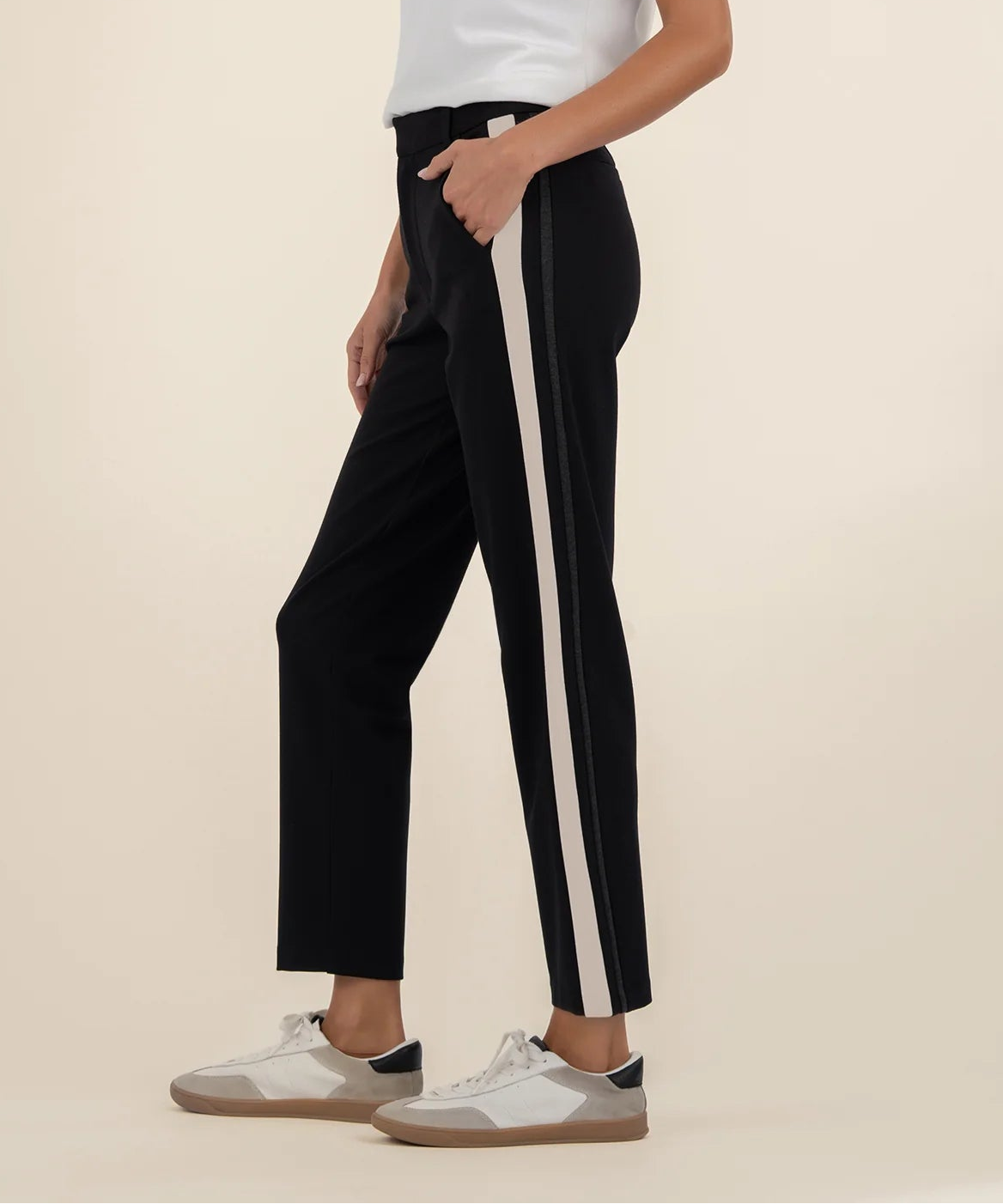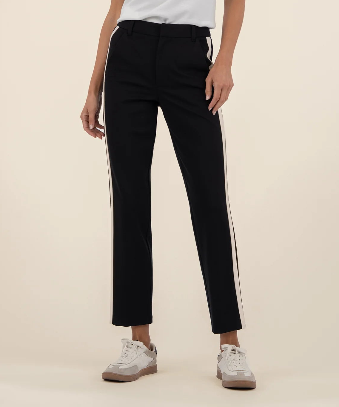 Elevate your everyday look with these high-rise straight leg pants in classic black. Designed with a subtle side inset detail and made from very stretchy fabric, they offer a flattering fit and all-day comfort—perfect for work, weekends, and everything in between.