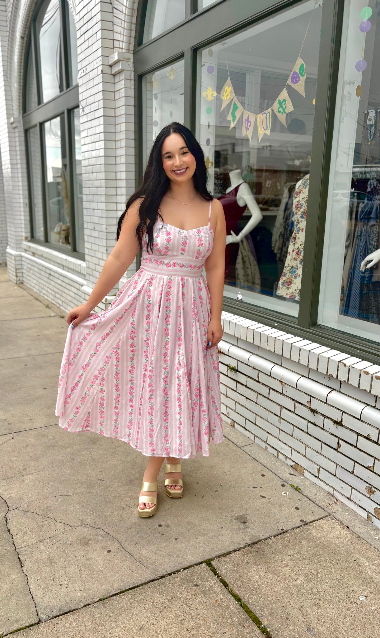 A floral-print midi dress featuring an adjustable spaghetti straps and a flattering empire waist. Designed with a smocked back for comfort and flowy skirt for effortless movement.