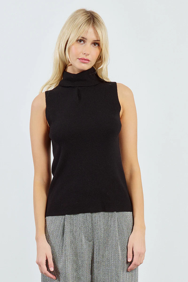 -Thin turtleneck sweater-Sleeveless-Stand-up collar-Length from the shoulder 22.0 inch for a size S