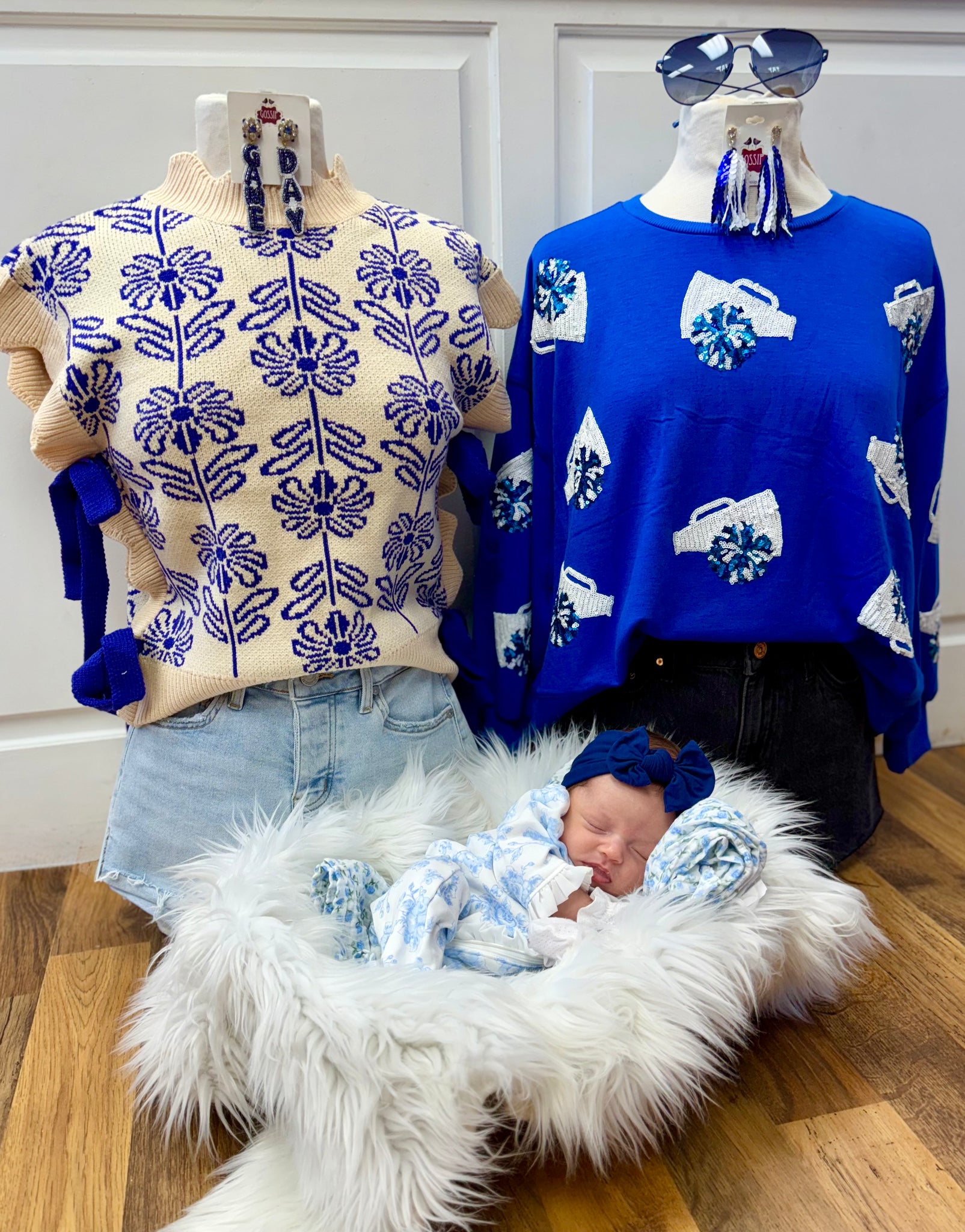 The Cozy in Bloom Knit Sweater-Royal Blue